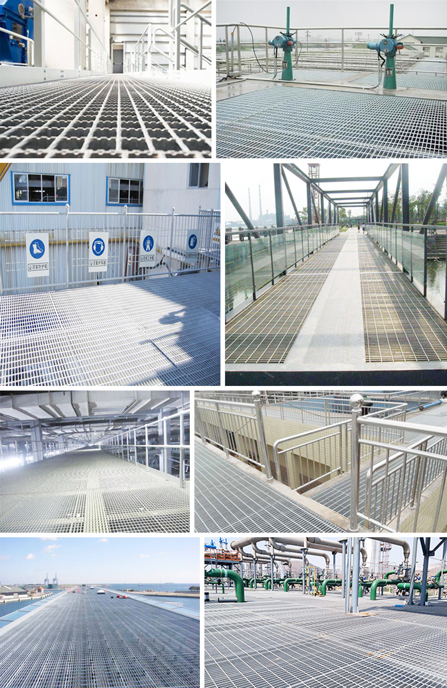 主要用作工業(yè)平臺,鍋爐平臺,環(huán)保設(shè)備,梯踏板,扶欄,通道地板,鐵路橋側(cè)道,高空塔架平臺,排水溝蓋,井蓋,道路隔柵,立體停車場,機關(guān)、學(xué)校、工廠、企事業(yè)、運動場、也可用作民宅的外窗,陽臺護欄,高速公路、鐵路的護欄等。